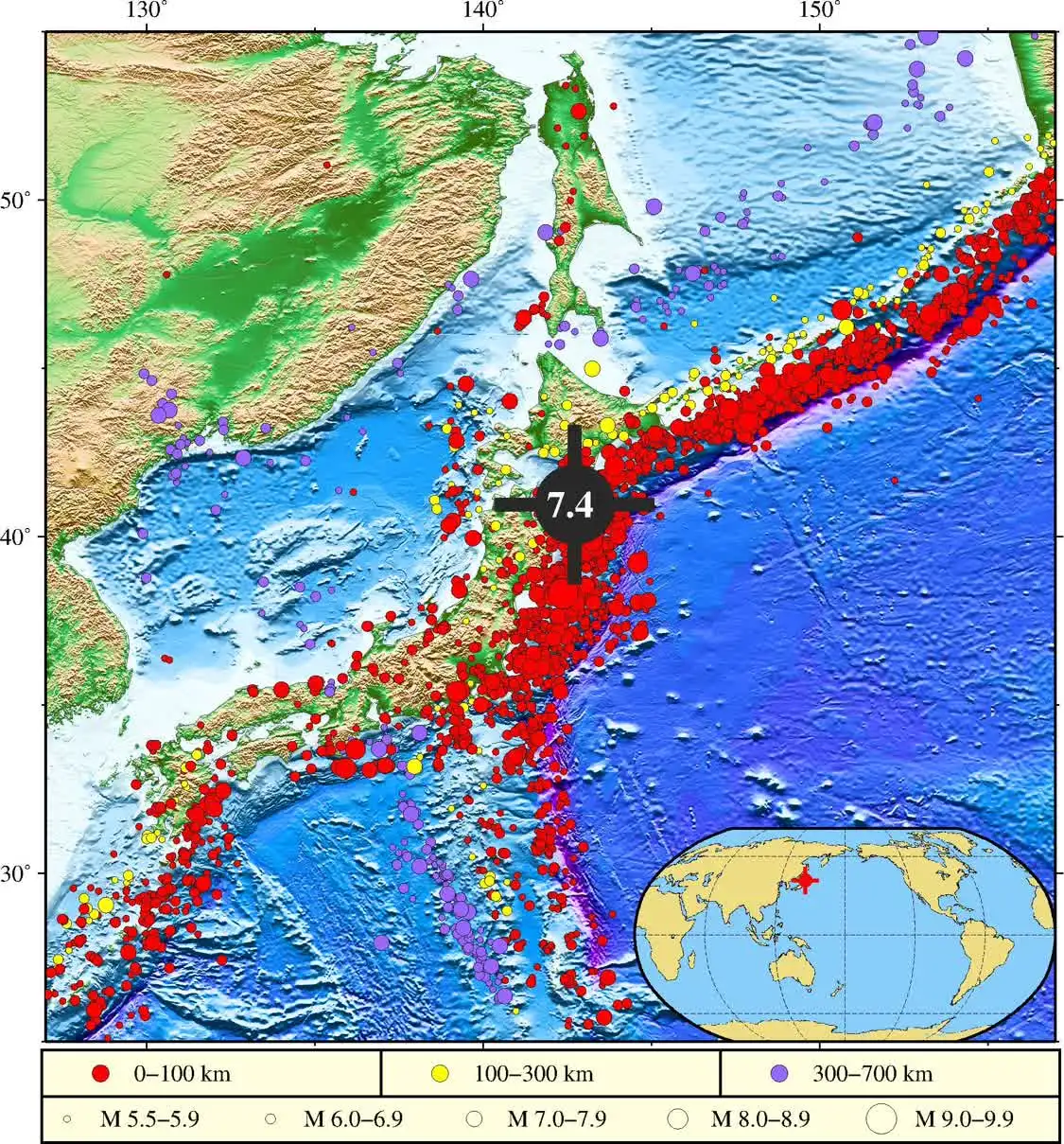 中国地震台网正式测定:12月08日22时15分在日本本州东部附近海域(北纬41.00度,东经142.35度)发生7.5级地震,震源深度50千米。