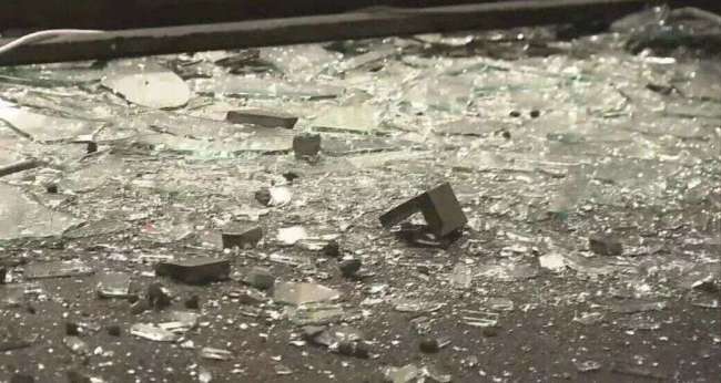 当地时间8日,日本青森县八户市一酒店地震后,玻璃破碎并散落了一地。图源:央视新闻