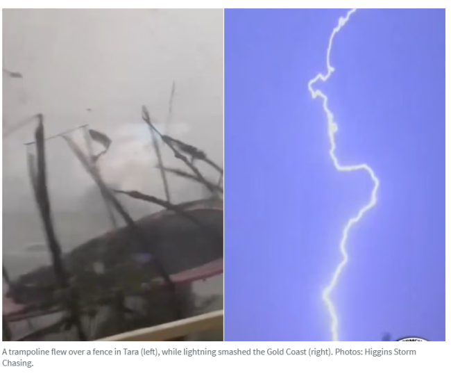 风暴最初在Western Downs地区生成,席卷了Tara、Dalby和Miles等城镇,随后于夜间向东北方向推进,并在午夜前袭击了Moreton Bay及阳光海岸南部地区。
