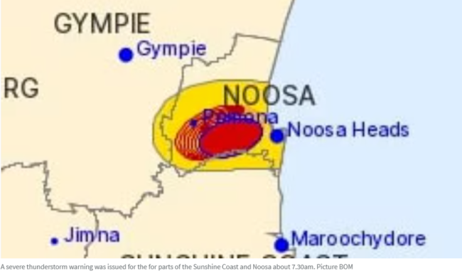气象局今晨7时30分对Noosa及阳光海岸地区发布最新强风暴警报。
