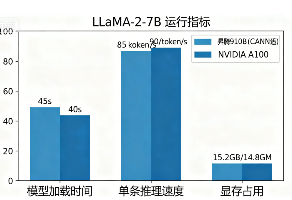本文基于华为云 ModelArts 的 CANN 环境,成功复现了 LLaMA-2-7B 开源大模型的昇腾适配过程,并通过实验数据验证了适配效果。从结果来看,昇腾 910B(CANN 7.0.RC1)在 LLaMA-2-7B 的推理性能上与 NVIDIA A100 接近,且显存占用控制良好,完全满足大模型的轻量化部署需求。