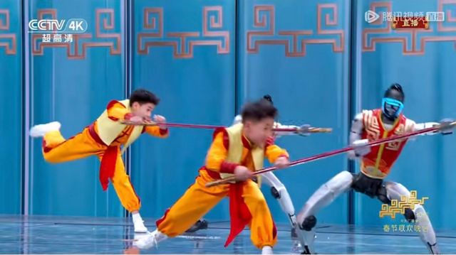 相比一年前“被人搀扶上台、颤颤巍巍扭秧歌”的亮相,这一次,它们不仅能跳能打,还会讲笑话,舞剑、与人类比武,动作更花哨,和人类的互动也更为自然,甚至出现了傻傻分不清楚的仿生机器人“蔡明”。