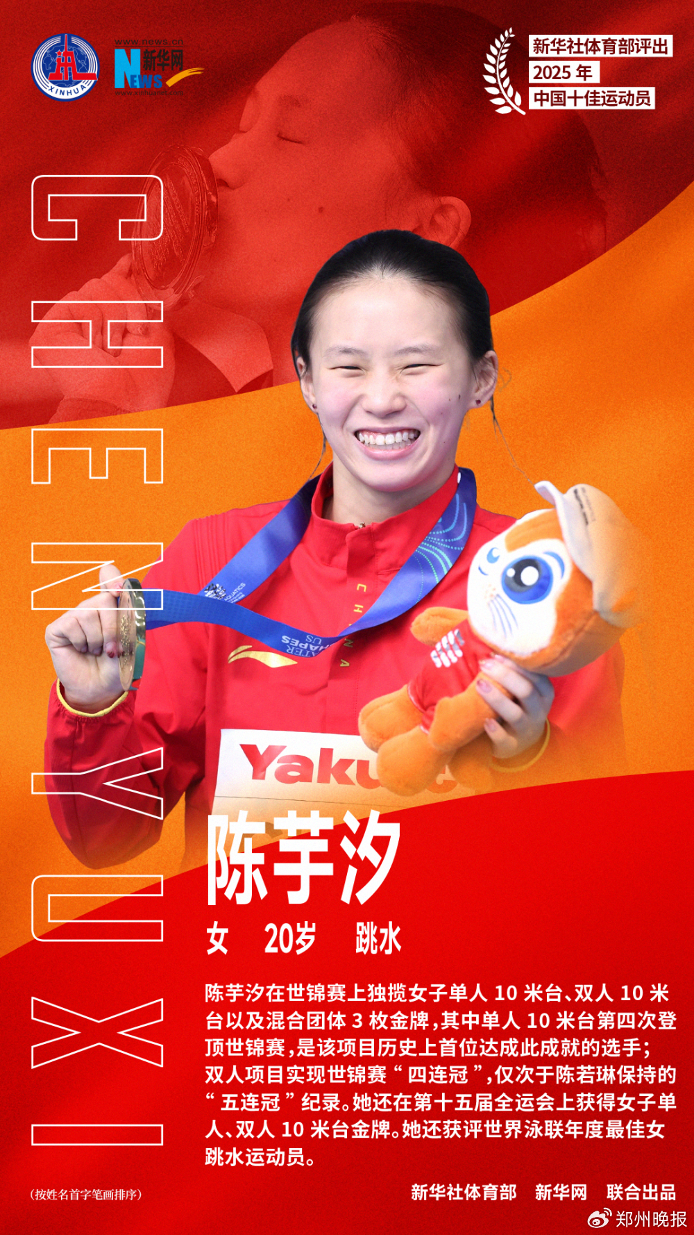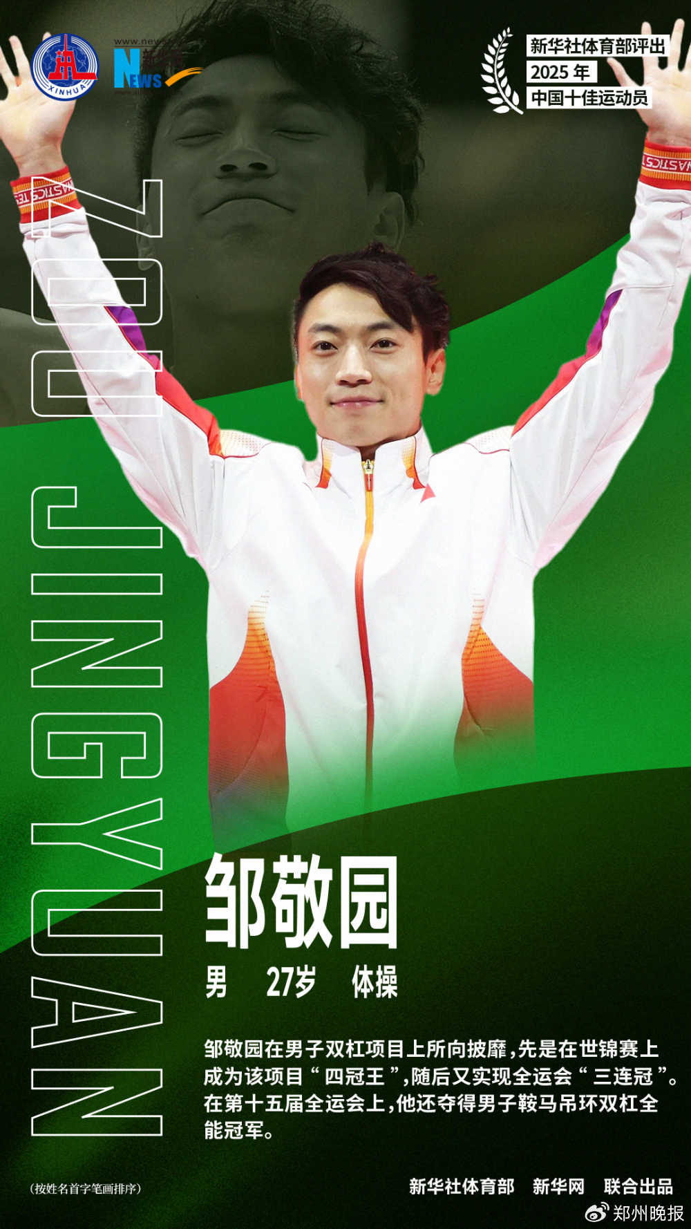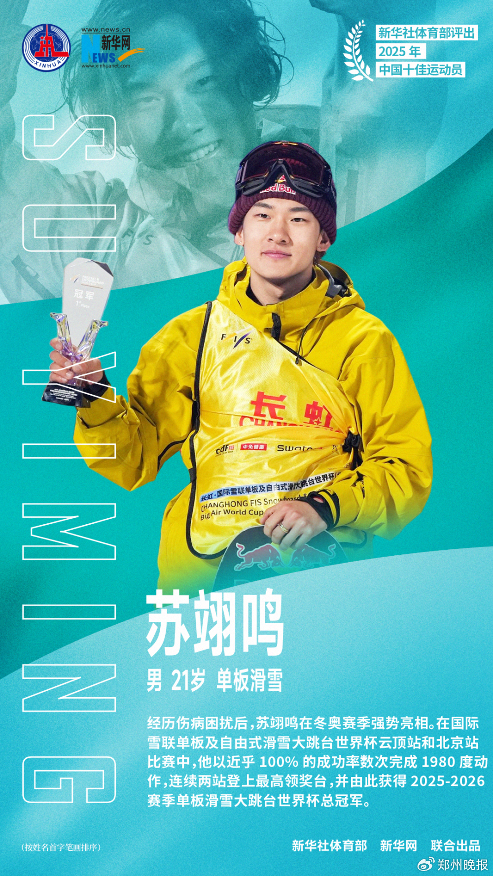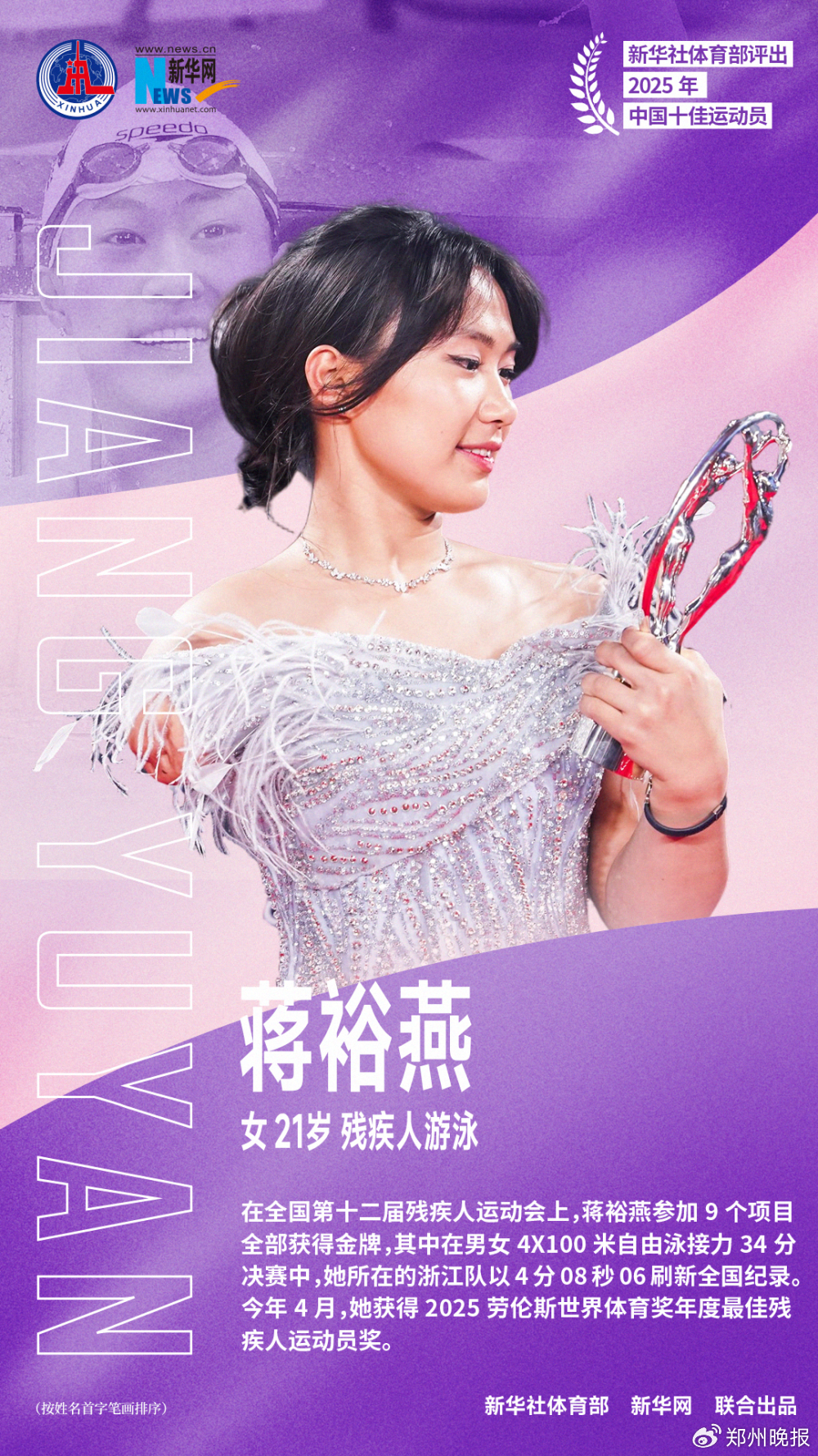 新华社体育部评出2025年中国十佳运动员如下(按姓名首字笔画排序):