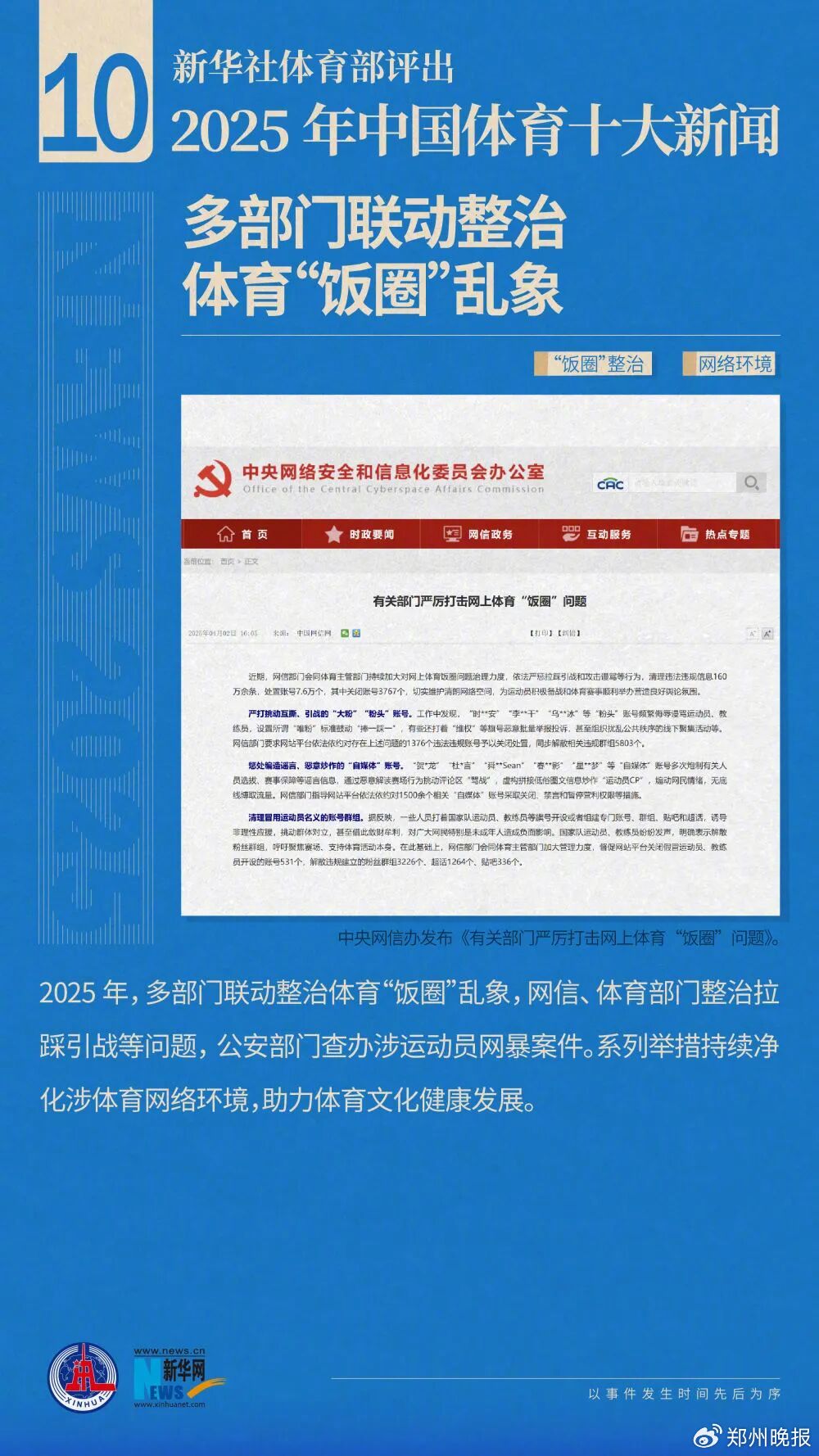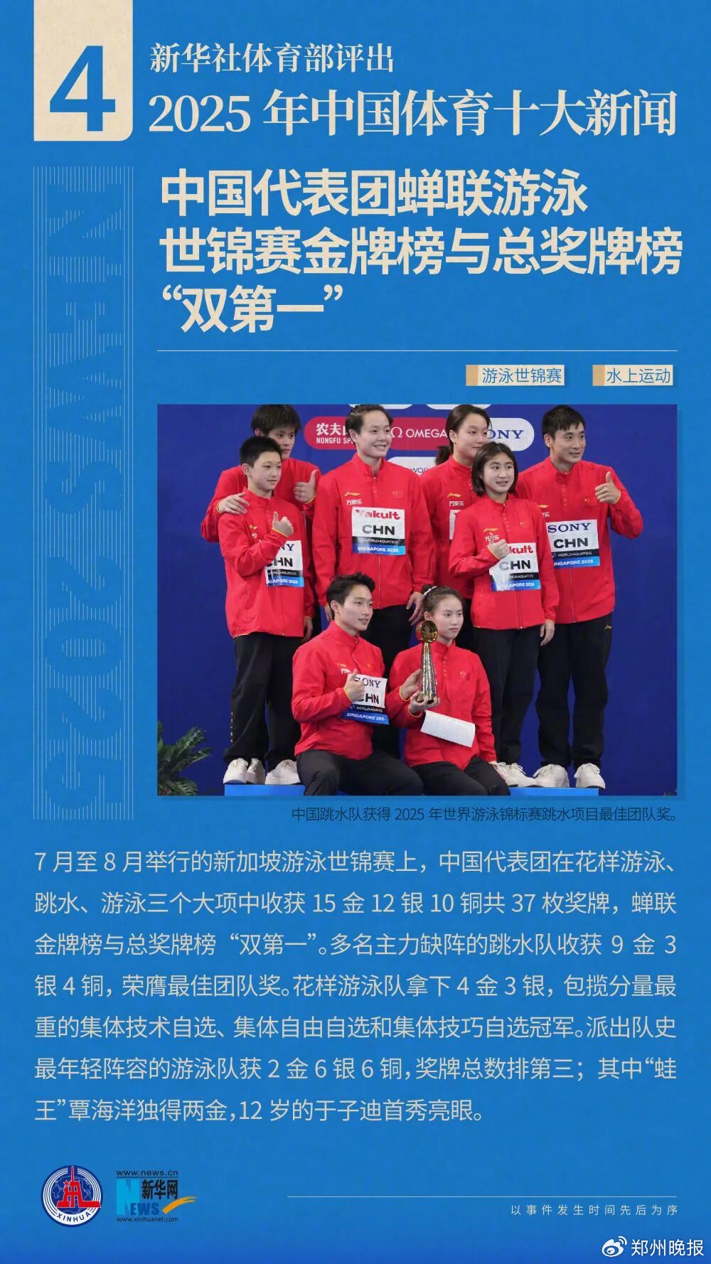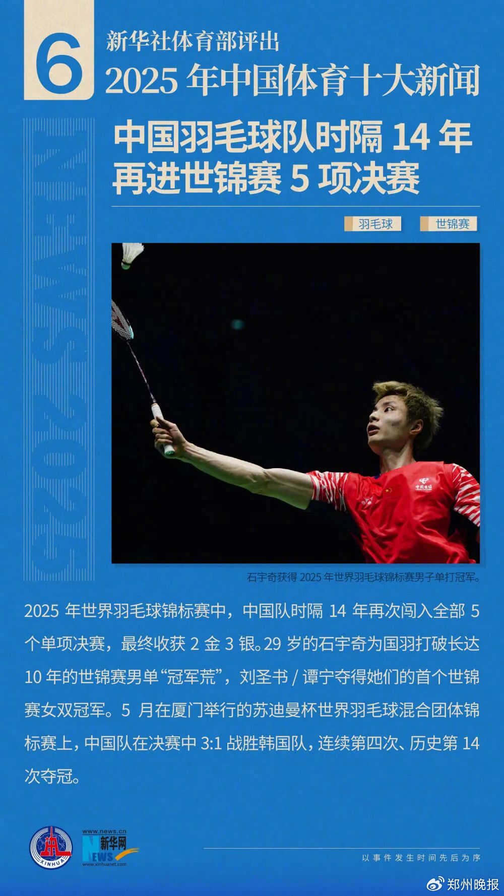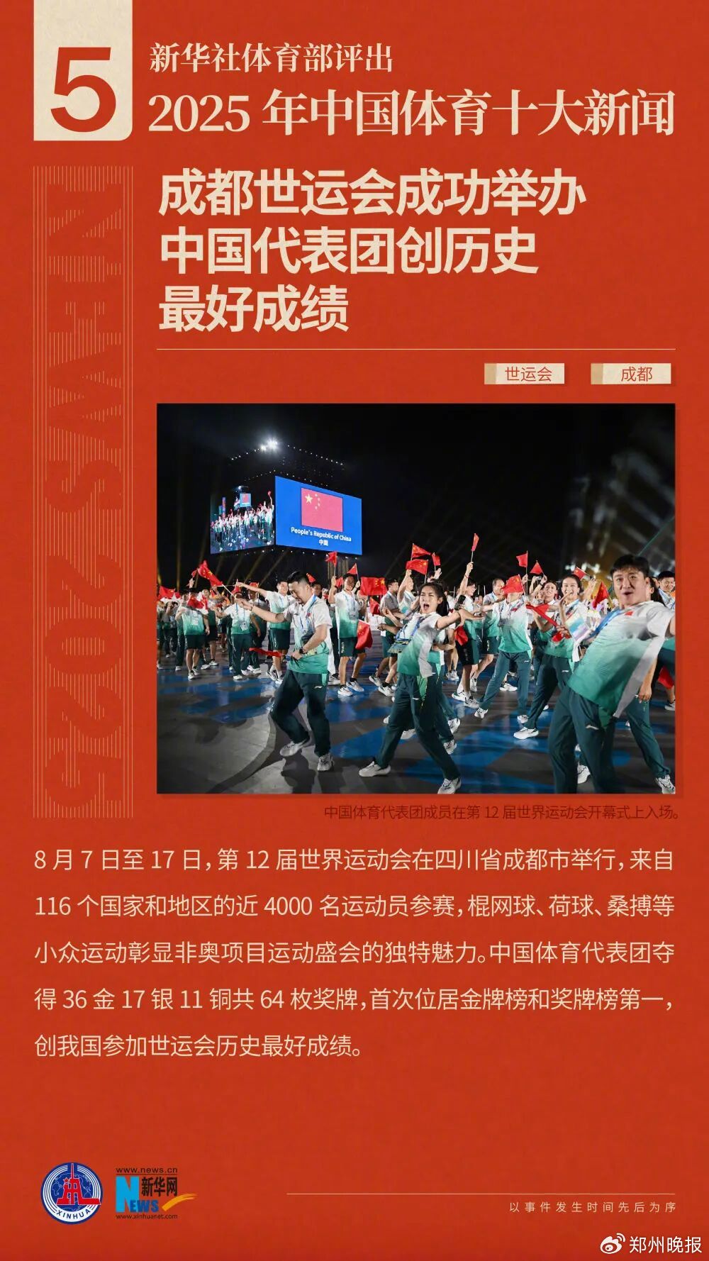 新华社体育部评出2025年中国体育十大新闻(以事件发生时间先后为序):