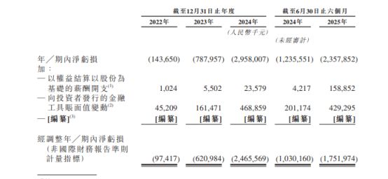 2022年至2024年各年度,智谱分别录得净亏损1.44亿元、7.88亿元和29.58亿元,2025年上半年净亏损为23.58亿元,亏损额同比扩大91%。从亏损额看,其扩大速度明显快于收入增速。