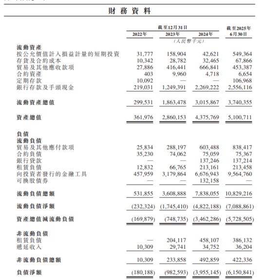 此外,伴随亏损扩大,公司负债净额持续上升,截至2025年6月30日已达61.51亿元,同期,流动负债净额达到70.89亿元。这主要因为向投资者发行金融工具。
