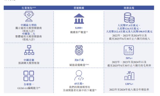 2022年至2024年,智谱收入分别为5740万元、1.25亿元和3.12亿元,年均复合增长率超130%。收入增速在2025年上半年进一步放大,2025年上半年,智谱实现营收1.91亿元,较2024年同期的4490万元同比增长325.39%。