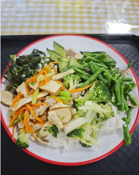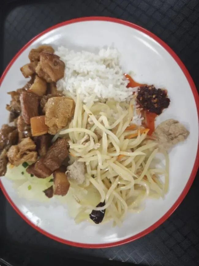 菜的味道,就跟家里做的一样,荤素搭配,营养均衡,冒着温热的蒸汽,朴实而熨帖。
