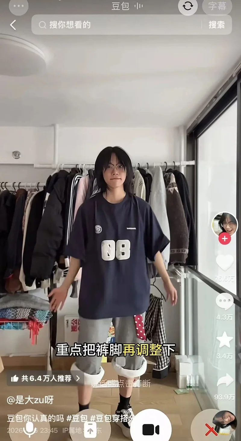 豆包让大朱卷裤脚(图源 抖音@是大zu呀)