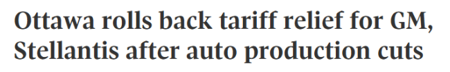 此举是为了向这两家公司施压,要求它们重新投资于加拿大的生产和工人,以重新获得这一优惠并避免巨额的关税账单。