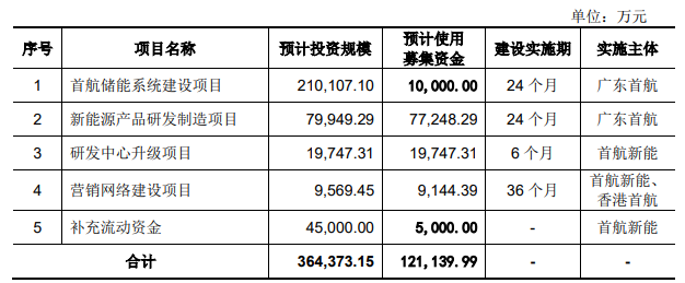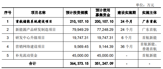 调整情况:募资总额由15.11亿元增加至35.12亿元,大幅增长20.01亿元;项目数量由4个变为5个,增加首航储能系统建设项目,拟投入募集资金20.01亿元。
