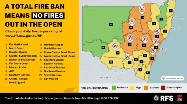 新州乡村消防局 NSW Rural Fire Service 火情与火险通告
