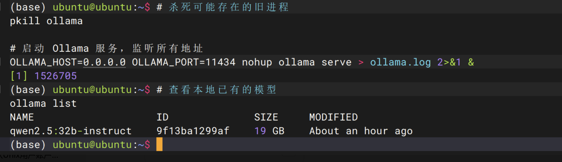 OLLAMA_HOST=0.0.0.0 OLLAMA_PORT=11434 nohup ollama serve > ollama.log 2>&1 &