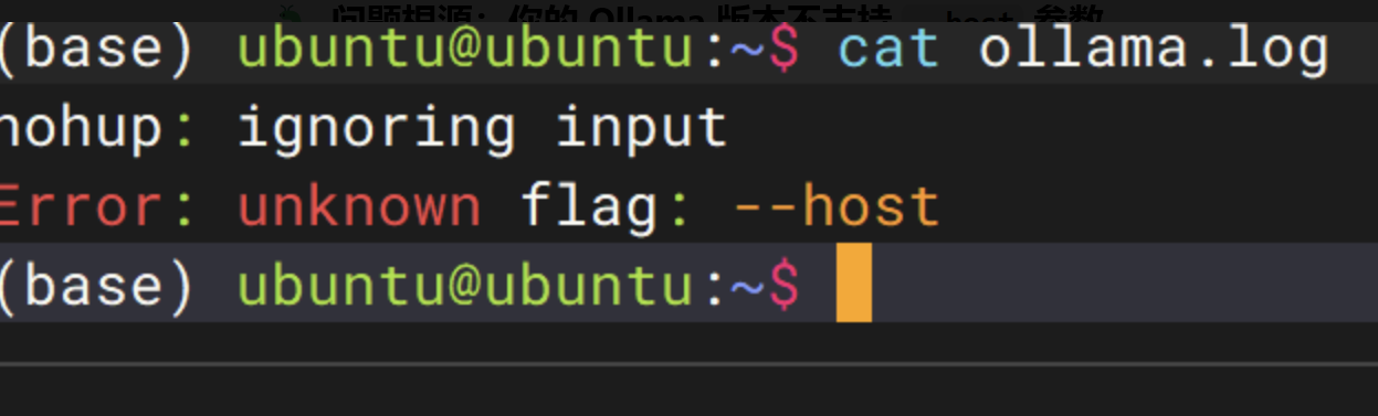 原因是:安装的 Ollama 0.17.5 版本中,ollama serve 命令不支持 --host 参数