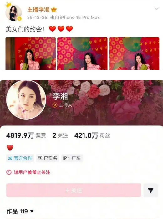 值得一提的是,就在账号被禁关注前夕,李湘还曾公开露面。