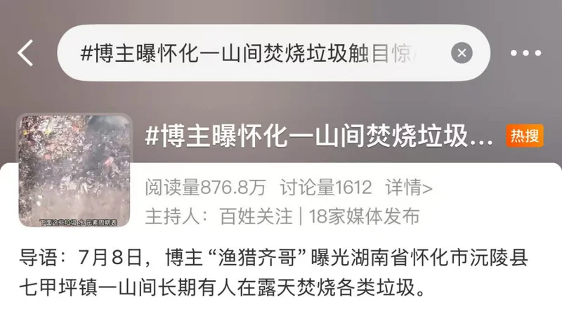 博主曝光湖南怀化一垃圾场露天焚烧,