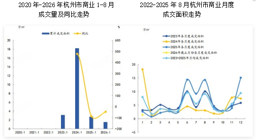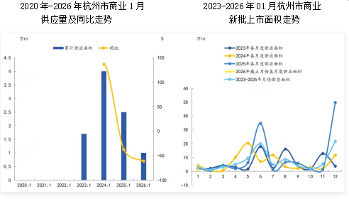 2026年1月,杭州商业月均新批上市面积为1万㎡,同比下降61.3%。
