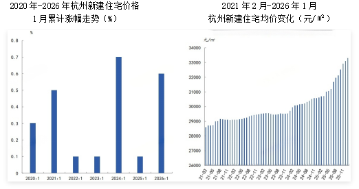 2026年1月,杭州新建住宅价格累计上涨0.60%,涨幅较去年同期扩大0.50个百分点。
