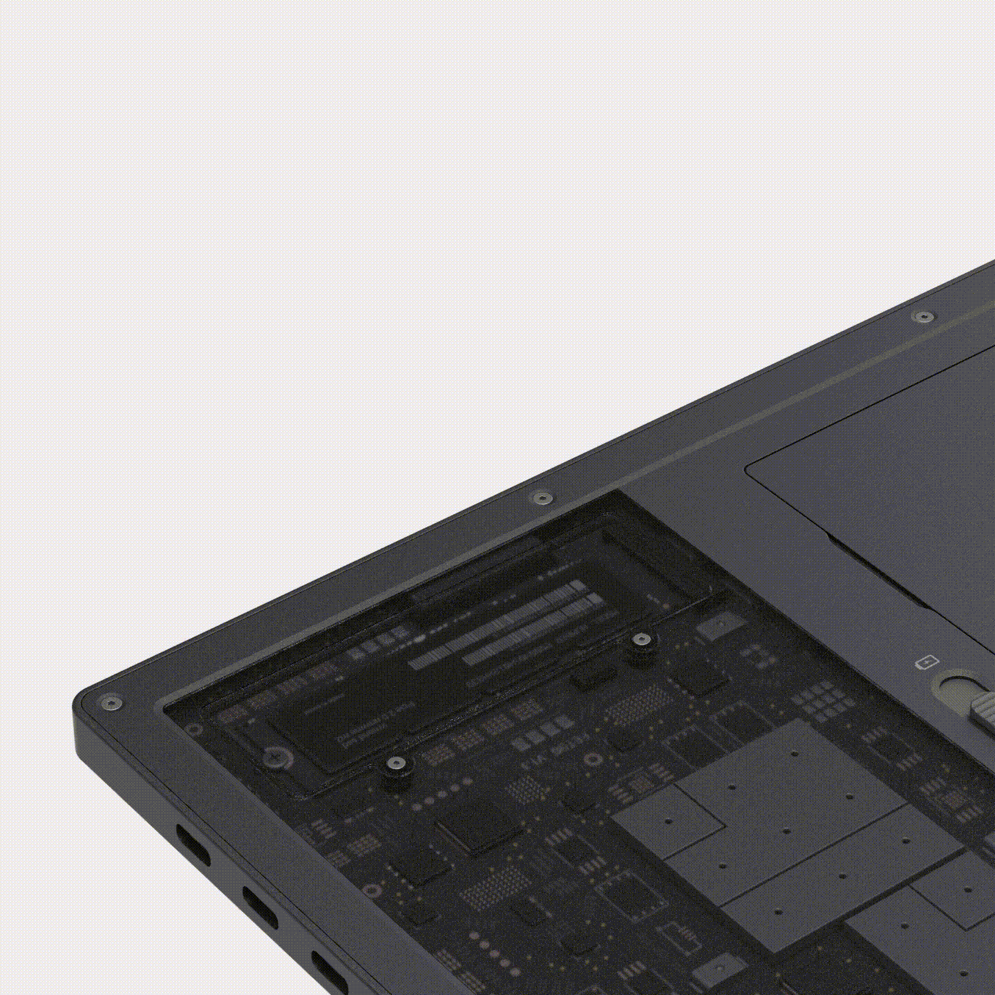 与传统平板相比,open_slate 的一大特点在于其高度模块化设计。 机身外壳设计成可通过螺丝刀快速打开,用户在电池容量衰减时可以自行更换电池,或在高强度使用场景下直接更换上已充满的电池,以延长续航时间。 内部预留的 M.2 插槽可用于扩展 SSD,最多新增 1TB 存储空间,也可以插入 5G 蜂窝网络模块或 AI 加速卡,从而在本地运行大语言模型,或搭建实验性的 AI 硬件平台。