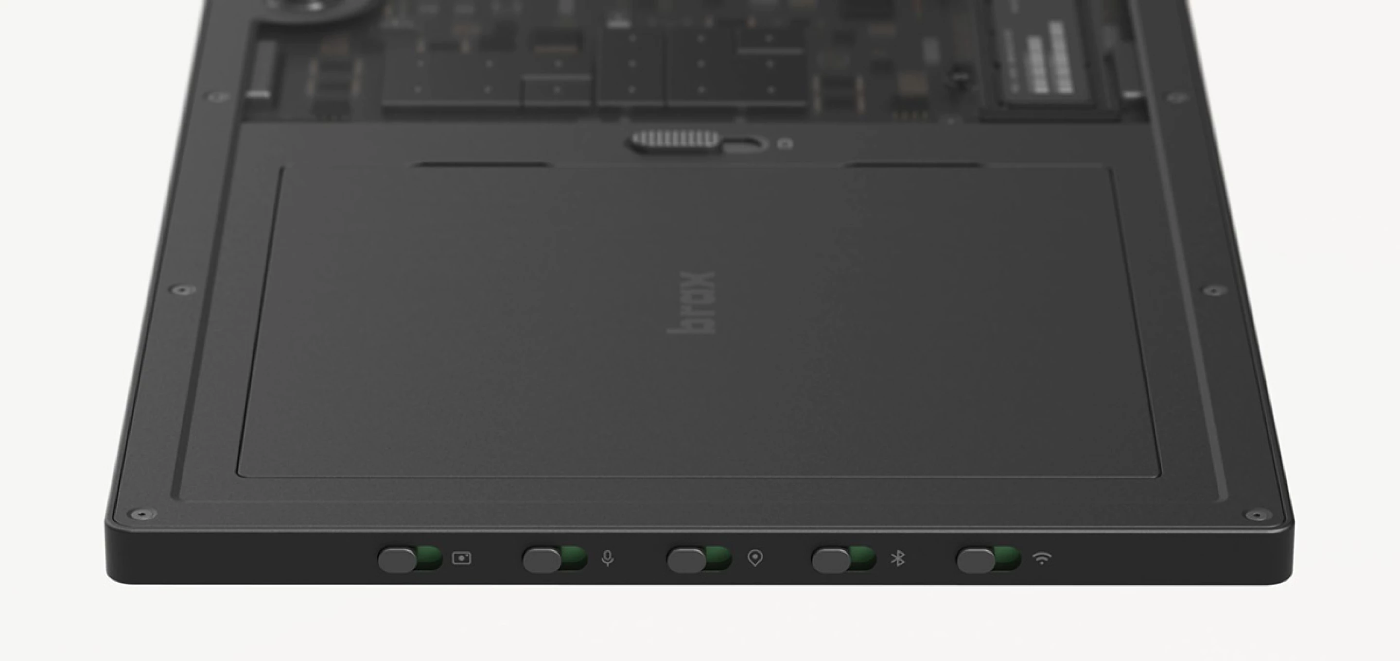面向注重数字隐私的用户,open_slate 在机身上提供了多个物理硬件开关,可单独切断摄像头、麦克风、GPS、蓝牙和 Wi-Fi 模块的电源。 与纯软件关闭不同,物理断开方式在设计上更侧重从根源上避免被恶意调用的风险,符合 Braxman 一贯的隐私安全理念。