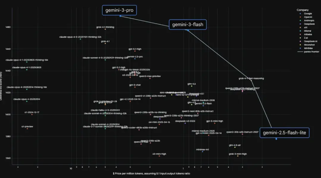 Gemini 3 Flash 在性能、成本和速度方面突破了帕累托极限 | 图源:Google官网