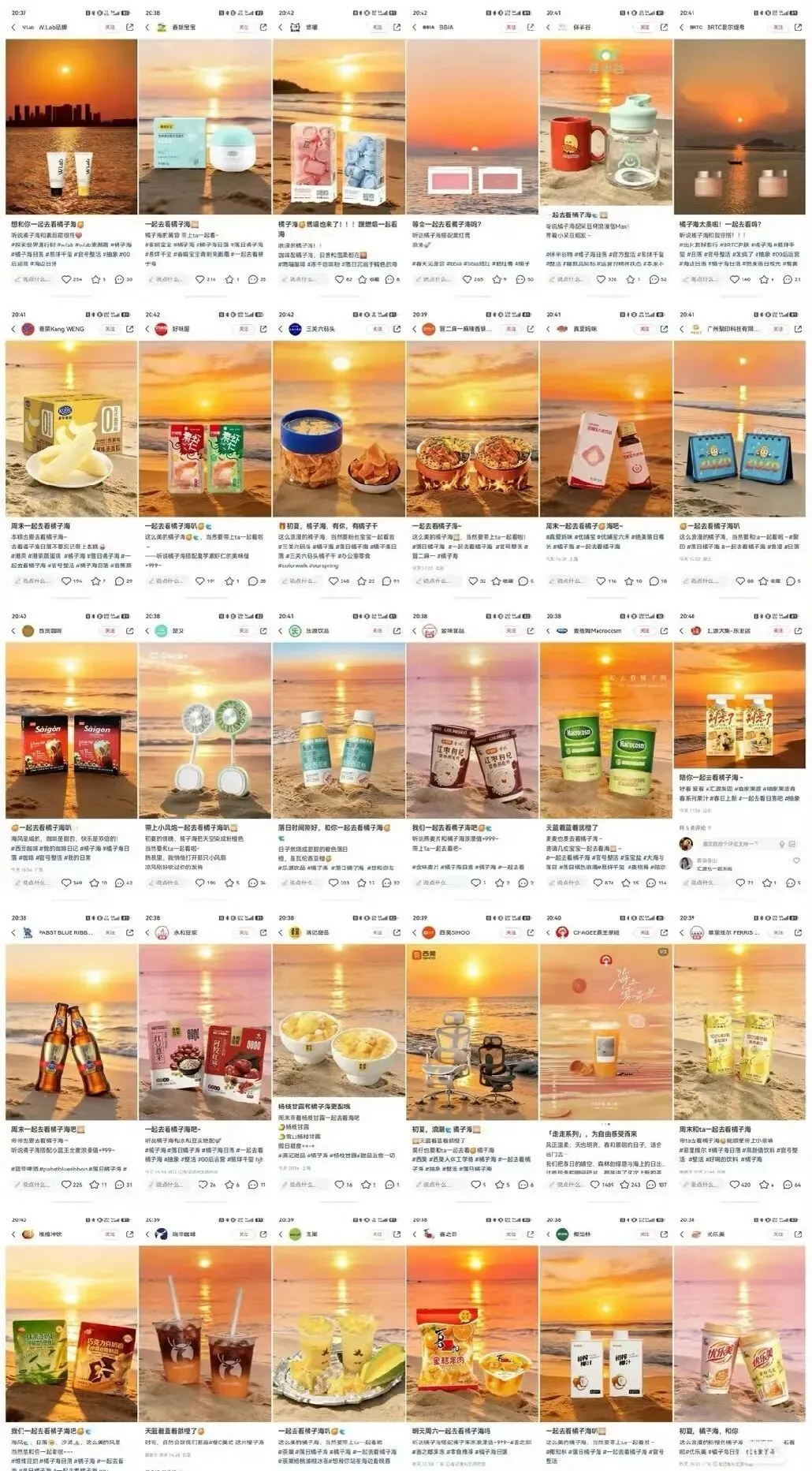 比如在橘子海乐队发声维权后,喜之郎、优乐美、绿联、仰望汽车等多个品牌和地方文旅账号也开始在社交媒体上密集使用“橘子海”这三个字,挂接到咖啡、零食、城市落日、海边景观这些更容易被消费和复制的场景里。