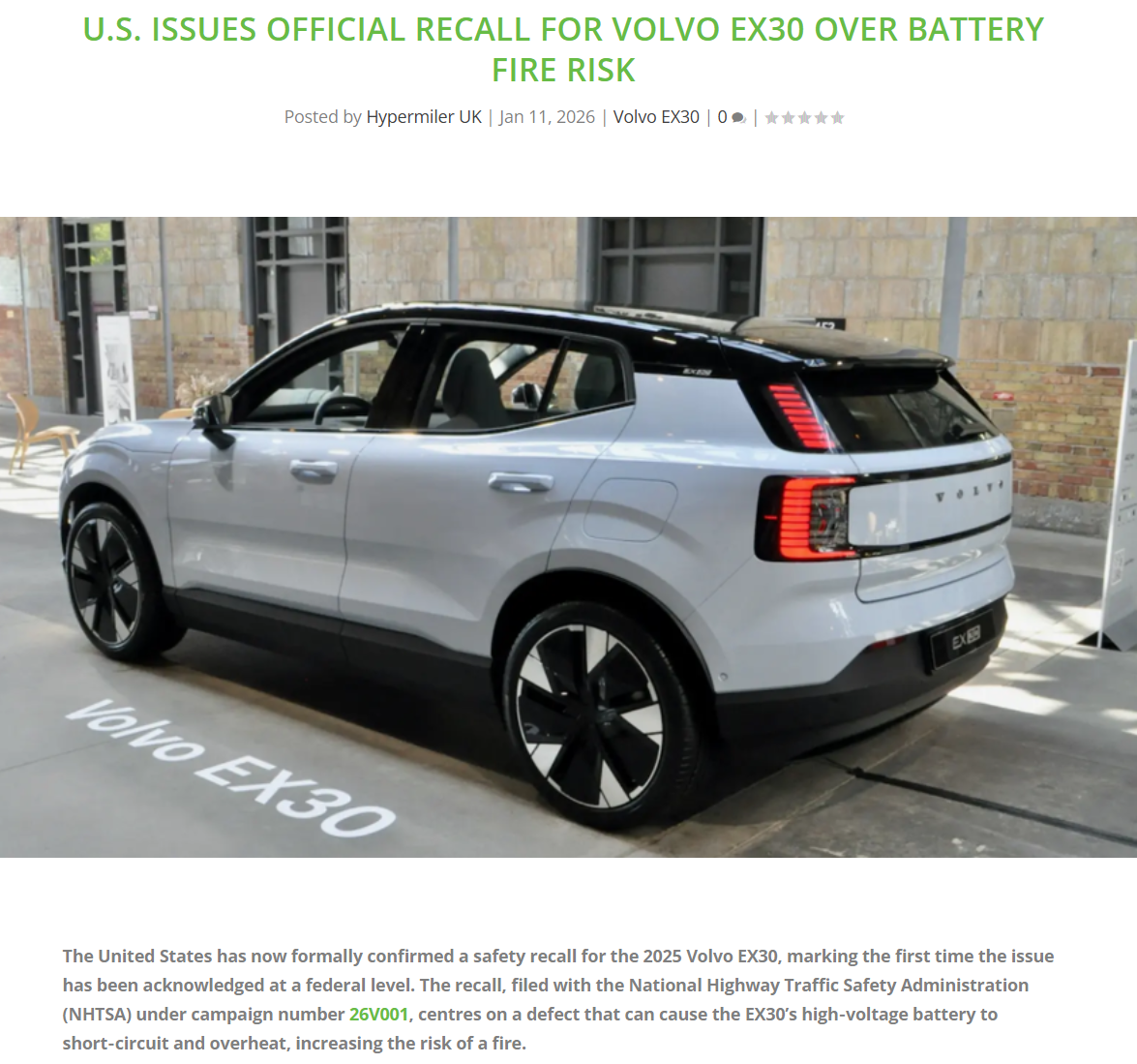 其中,沃尔沃已确认,英国有10,440 辆 EX30受到与Sunwoda(欣旺达)动力电池包的影响。