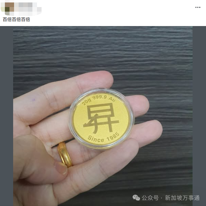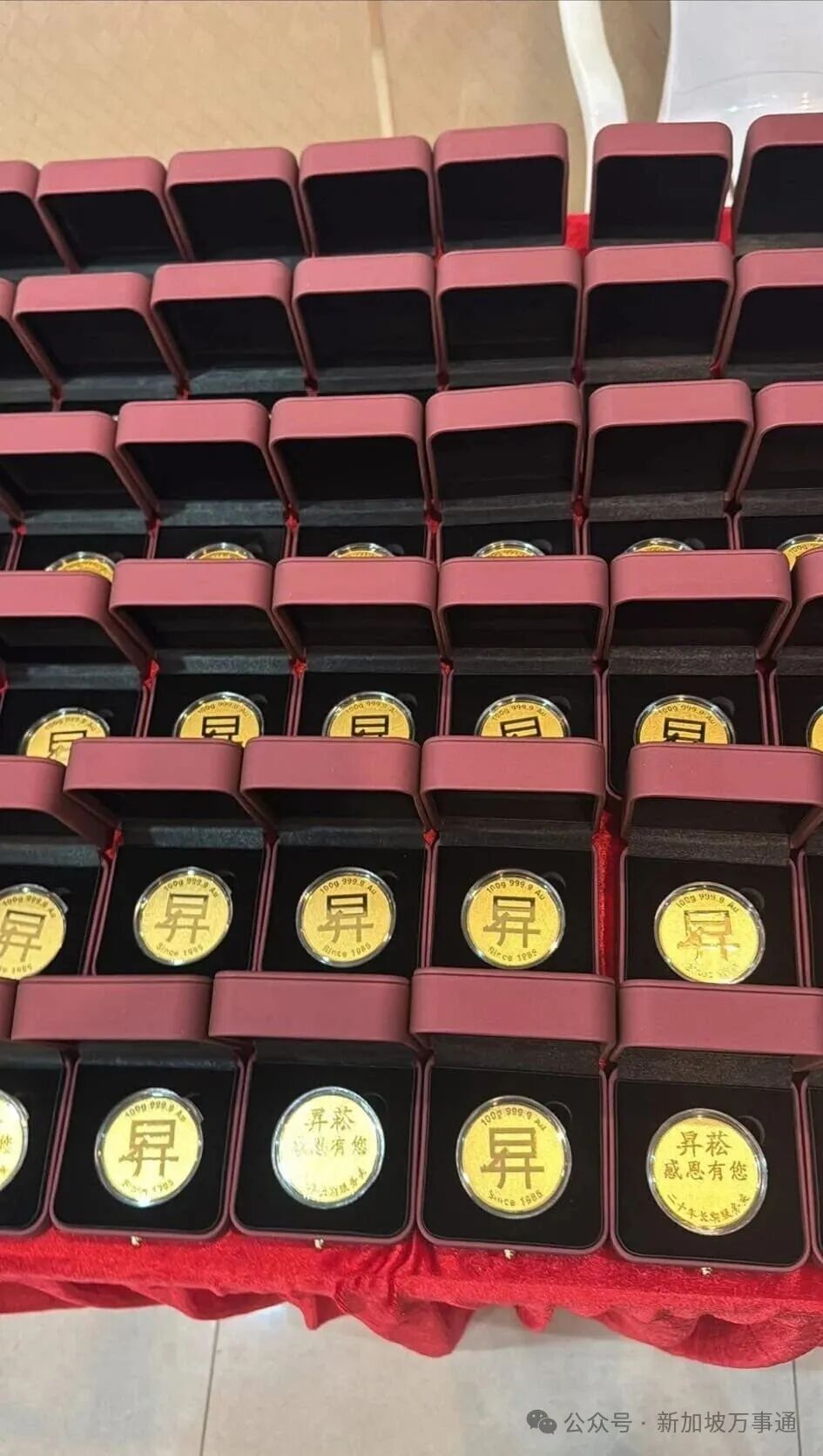 这家豪气到出圈的企业,就是新加坡人从小逛到大的昇菘超市。老板对做满20年的员工,直接奖励一枚100克的999足金金币,价值近1.9万新元。