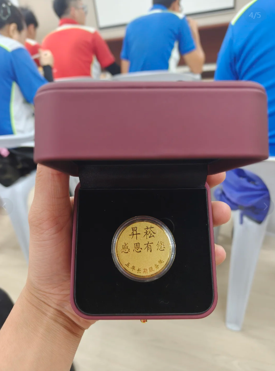 近日,一大波昇菘超市的员工在社交媒体晒出了自己领取的999纯度黄金金币的照片和帖文,网友称:这是公司颁发的长期服务奖!