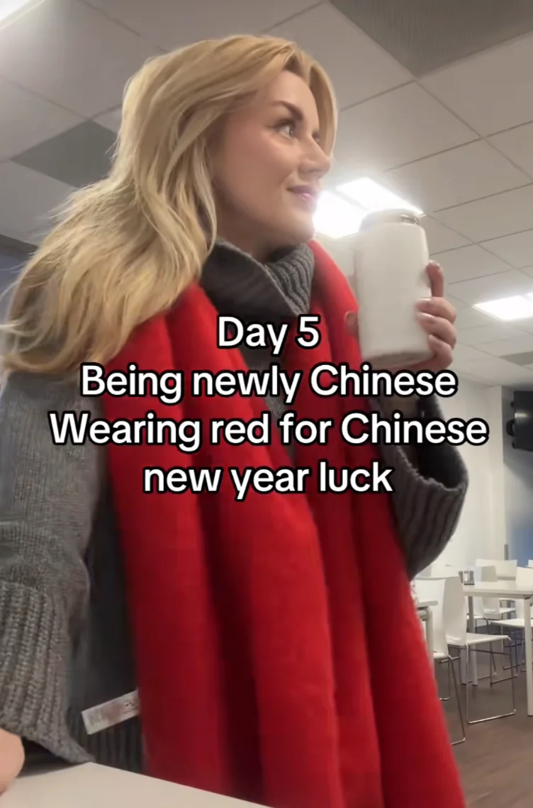 然而一旦接受了中国人对红色是“财富、幸运”的定义、接受了传统中国年就是要穿红色,她们比中国人还早一步就换上了新年的装备。