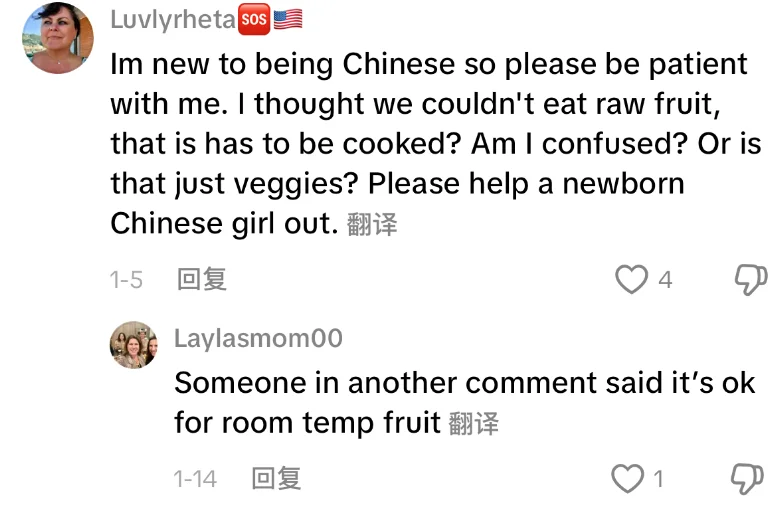这下又轮到外国朋友们犯难了:我是个新来的中国人,我以为我们不能吃生水果,那妈妈吃的水果是必须煮熟吗?请帮帮我吧。