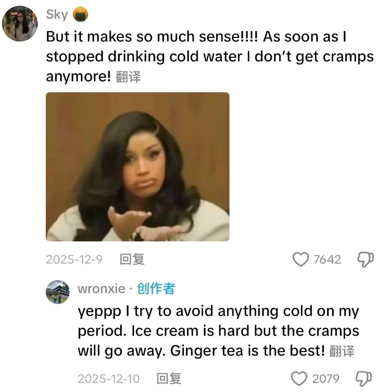有人说:自从自己停止喝冰水以后,身体再也不会痉挛了。