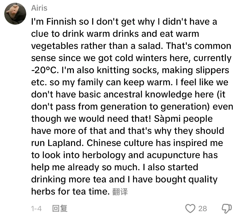 有芬兰的网友说,自己的国家明明这么冷,却从来没有听说过应该喝热饮吃热菜。