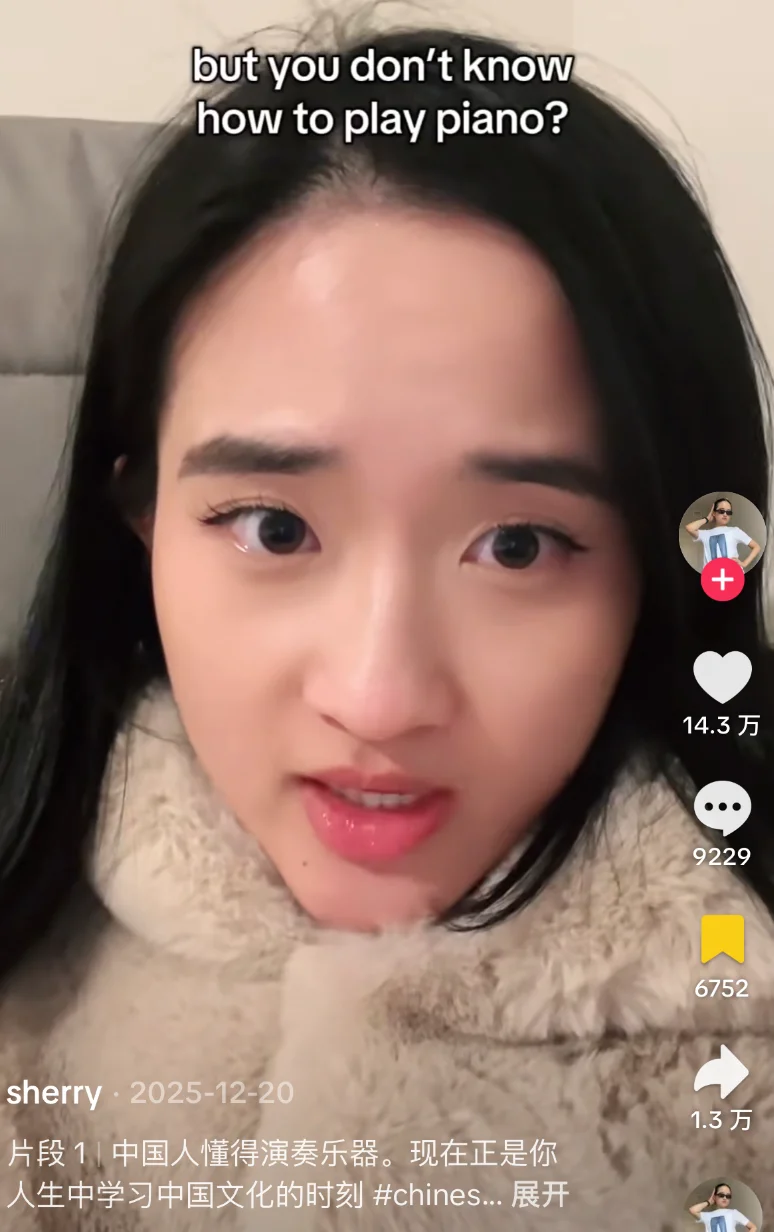 Sherry还说,成为一个中国人你必须要学会弹钢琴,你得懂音乐,会弹巴赫和贝多芬。