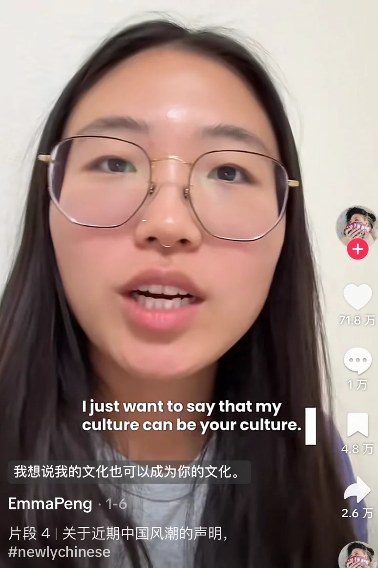 而身在美国的中国女孩也对大家“成为中国人”的行为表示包容:“我的文化也可以成为你的文化。”