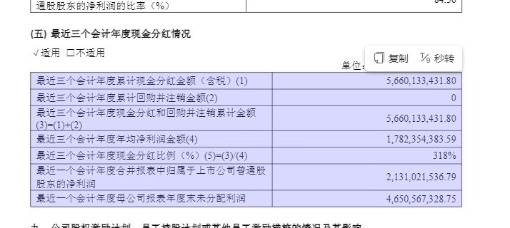 年报显示,公司计划进行大手笔分红——拟每10股派发现金红利23.4元(含税)。