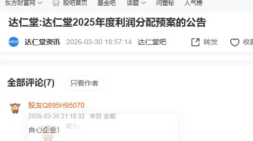 在主业稳健增长的同时,达仁堂也向市场展现了其回馈股东的决心和能力。公司2025年度利润分配预案显示,公司拟向全体股东每10股派发现金红利23.4元(含税)。