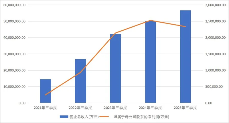前三季度累计营收5662.66亿元,同比增长12.75%;归母净利润233.33亿元,同比下降7.55%。