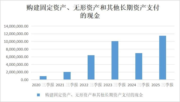 2025年三季报显示,公司购建固定资产、无形资产和其他长期资产支付的现金史上最高,超过1100亿元,预计2025年全年大概率突破1500亿元。