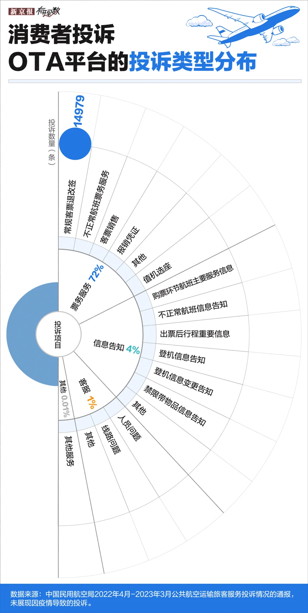 民航局2022年4月—2023年3月投诉通报(不含疫情相关情况)显示,票务服务投诉占比高达72%,是重灾区。
