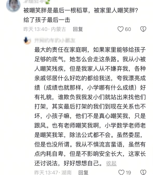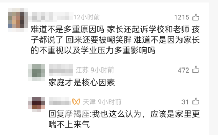 “把责任都推给了老师,却看不到孩子说回家被嘲笑,根本原因不是在家庭吗?”
