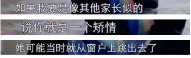 面对镜头时,孩子说的一句话振聋发聩:如果当时父母知道后像其他家长一样说她矫情,那她可能当场就跳楼了。