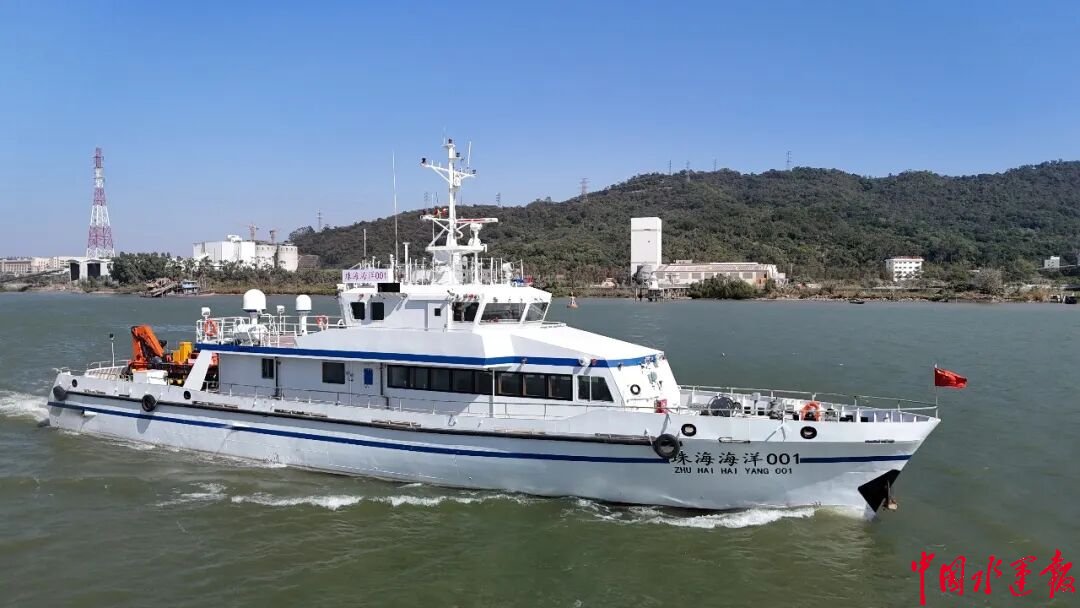“珠海海洋001”号是江龙船艇公务执法船艇的成熟船型,总长41.60米,型宽7.0米,型深3.90米。采用钢铝复合结构,三机三桨推进,设计航速25节,实测航速达27.3节,超过设计航速。子母船艇观测系统作为立体协同观测系统,通过各自搭载的监测设备(视频摄像头、水质采样器、多参数水质监测仪、水文气象及声呐探测设备、无人机等)提高移动监测频次,提升海上突发事件应急观测能力,服务于应急观测和海洋管理、执法、调查等工作。