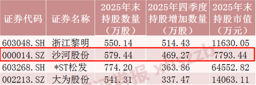 另据Wind数据统计显示,2025年四季度,QFII对9只股票持股数量增加,沙河股份获QFII加仓469.27万股,居全市场第二位。
