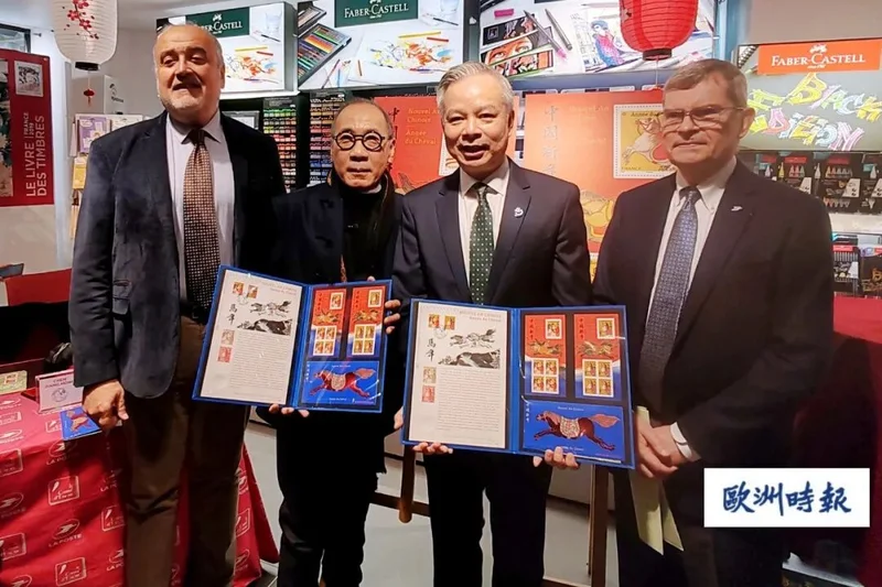 ▲ 法国当地时间2026年2月6日,法国邮政在位于巴黎圣拉扎车站附近的法国邮政集邮墨方厅举行农历丙午马年生肖邮票的首发仪式。中国驻法公使陈力出席首发仪式并致辞。