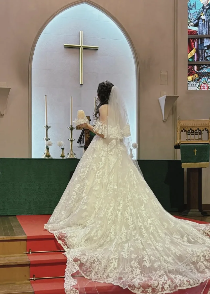地点选在冈山,一座看起来很像西方教堂的场地,教堂中央有十字架,周围也有宗教装饰,Lucie解释得很自然:“日本人很喜欢西式婚礼,哪怕他们并不是基督徒。很多未受洗的人也会选择在教堂举行婚礼。”