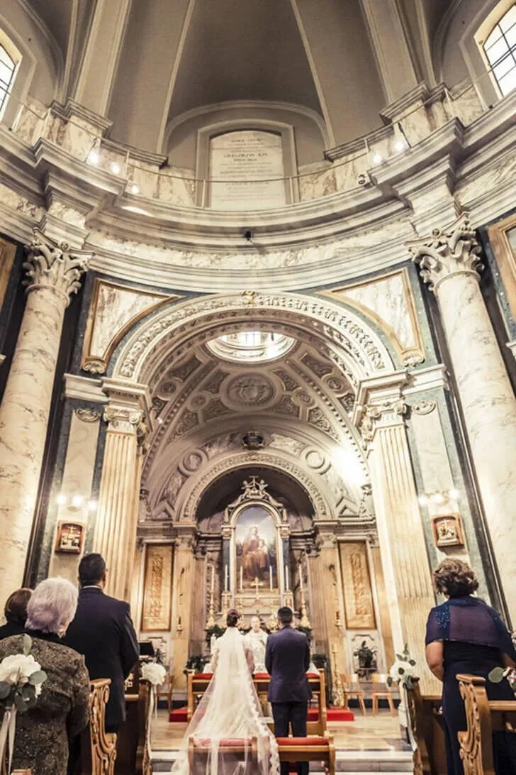 白色婚纱铺在地面,新娘新郎站在教堂中央,灯光柔和,音乐缓慢。誓言被郑重地念出,那是关于陪伴、忠诚与一生的承诺。这是大概是任何一场教堂传统婚礼都会出现的画面。