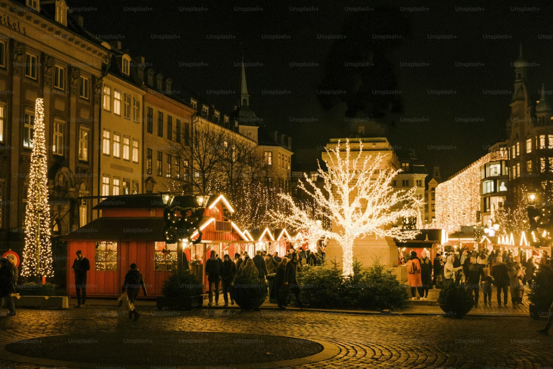 白日渐短,城市的灯火却愈发璀璨——街道两侧缀满流光溢彩的灯串,广场上搭起一排排温馨的小木屋,空气里混合着肉桂、热红酒和烤栗子的香味。