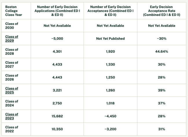 BC 的 ED 热度是什么级别?在 2024–25 申请季将近 4 万份申请里,约 5000 份来自 ED I + II。从往年数据来看,2028 届 ED 总共 4301 人申请,录了 1920 人,ED 录取率 44.64%。2027 届是 30%、再前一年还是 30%,和整体 14% 的总录取率一比,实在太香了!