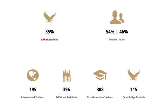 10月底,波士顿学院放出了新生数据:2479 名新生里,93% 高中排名 Top 10%,平均 SAT 1471,ACT 34。亚裔、非裔、拉丁裔、原住民学生合起来比例是 35%,国际生占 8%。对一所基督教传统、白人富裕家庭扎堆的学校来说,已经算明显多元化进展了。